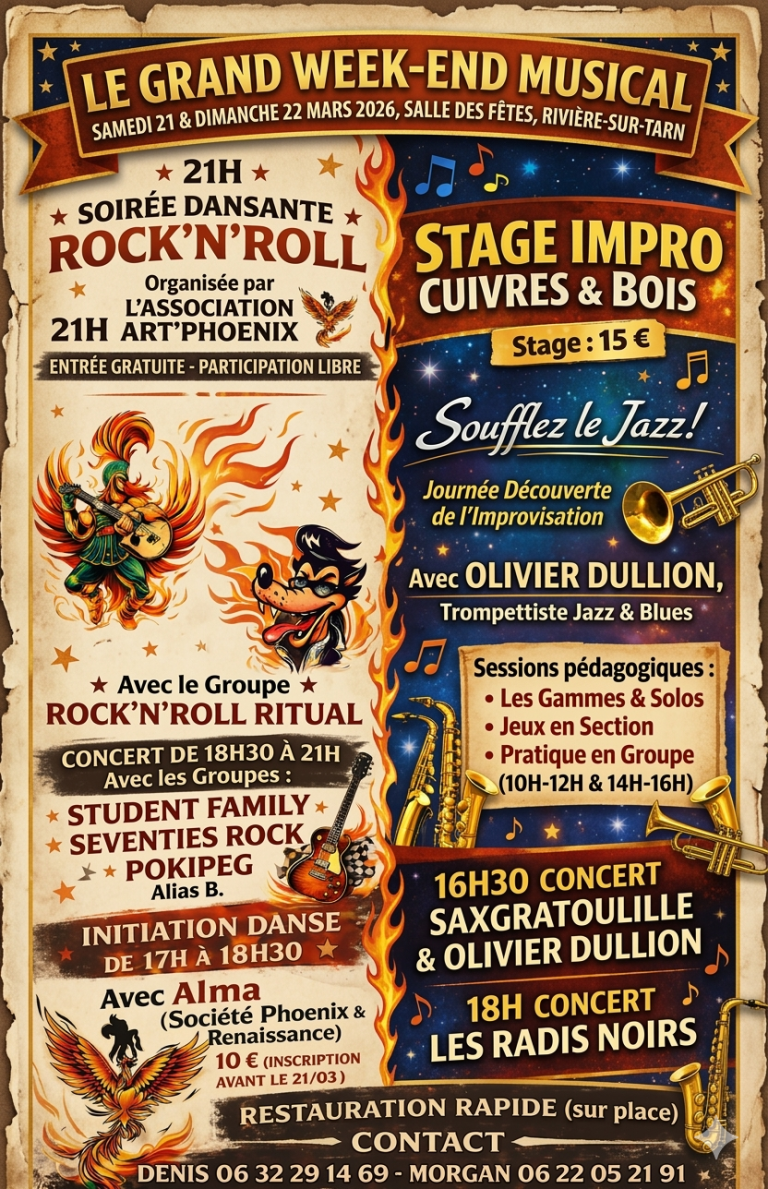 Week-end musical 21 et 22 mars avec ART PHOENIX