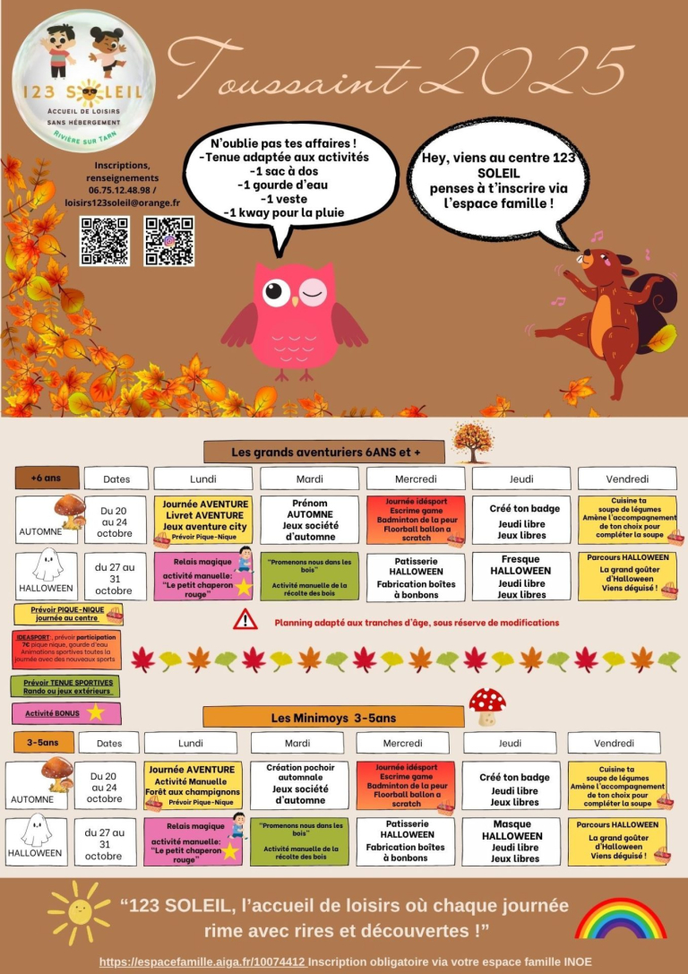 Les vacances sont bientôt là ! Retrouvez le programme du Centre de loisirs à Rivière-sur-Tarn.