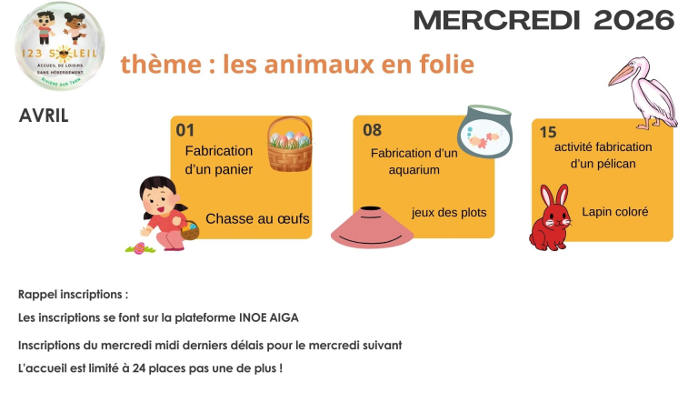 Retrouvez le programme du Centre de loisirs à Rivière-sur-Tarn.